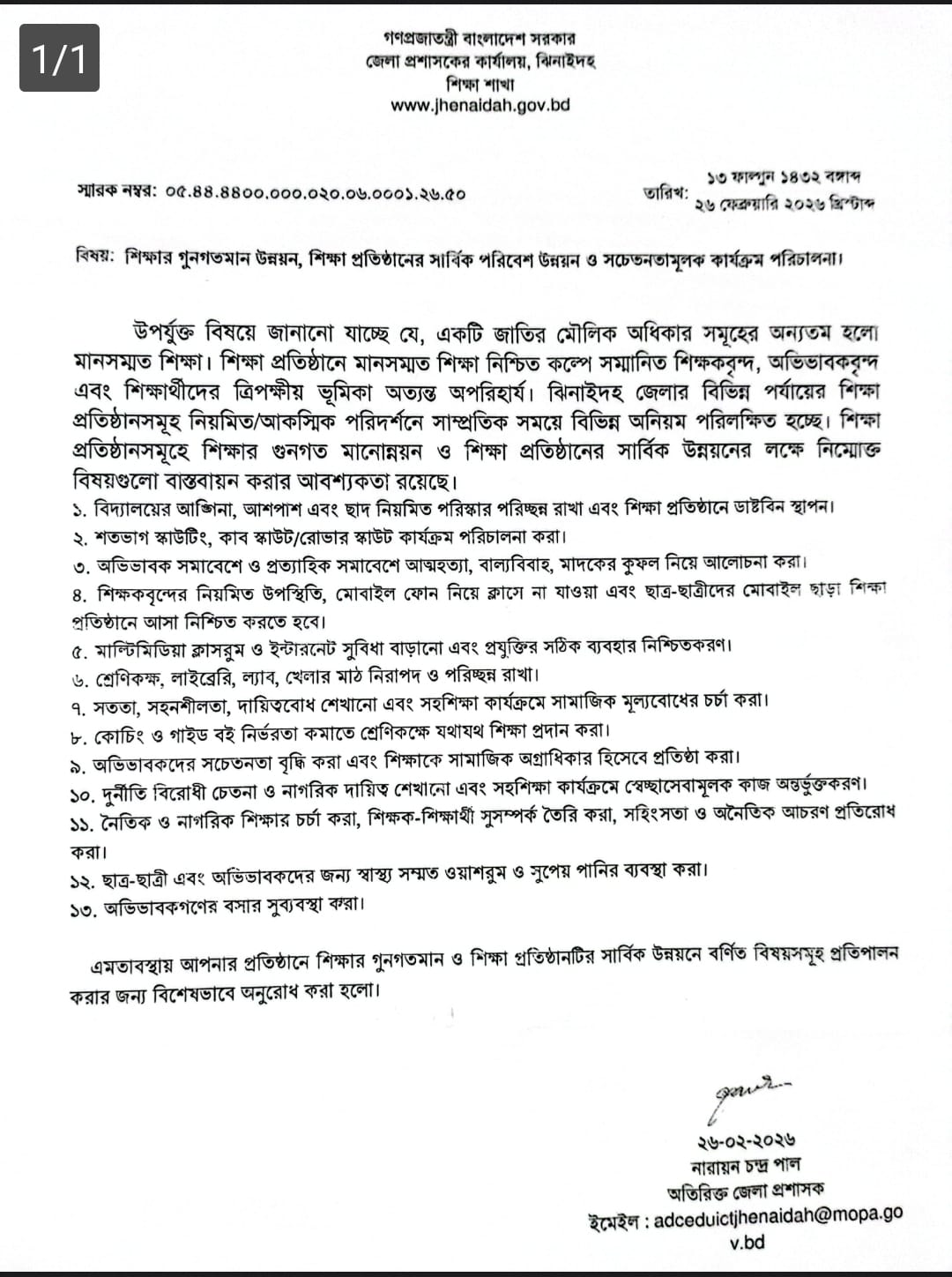 | ৯ | ০১ মার্চ ২০২৬ রবিবার পত্রটি হাতে হাতে গ্রহন করতে হবে। | | | ২৬-০২-২০২৬ | দেখুন |